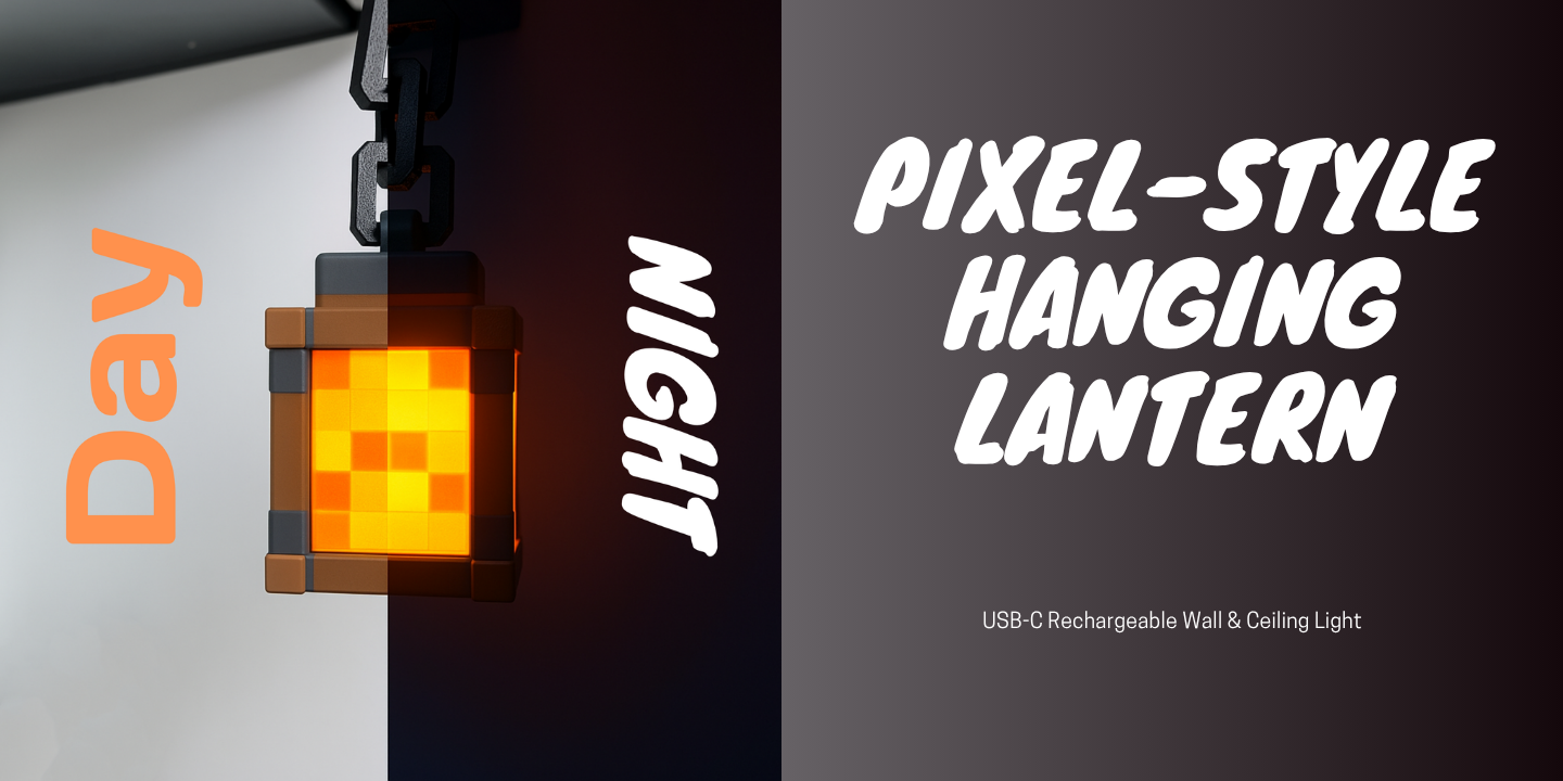 Pixel-Style Hanging Lantern | USB-C Rechargeable Wall & Ceiling Light