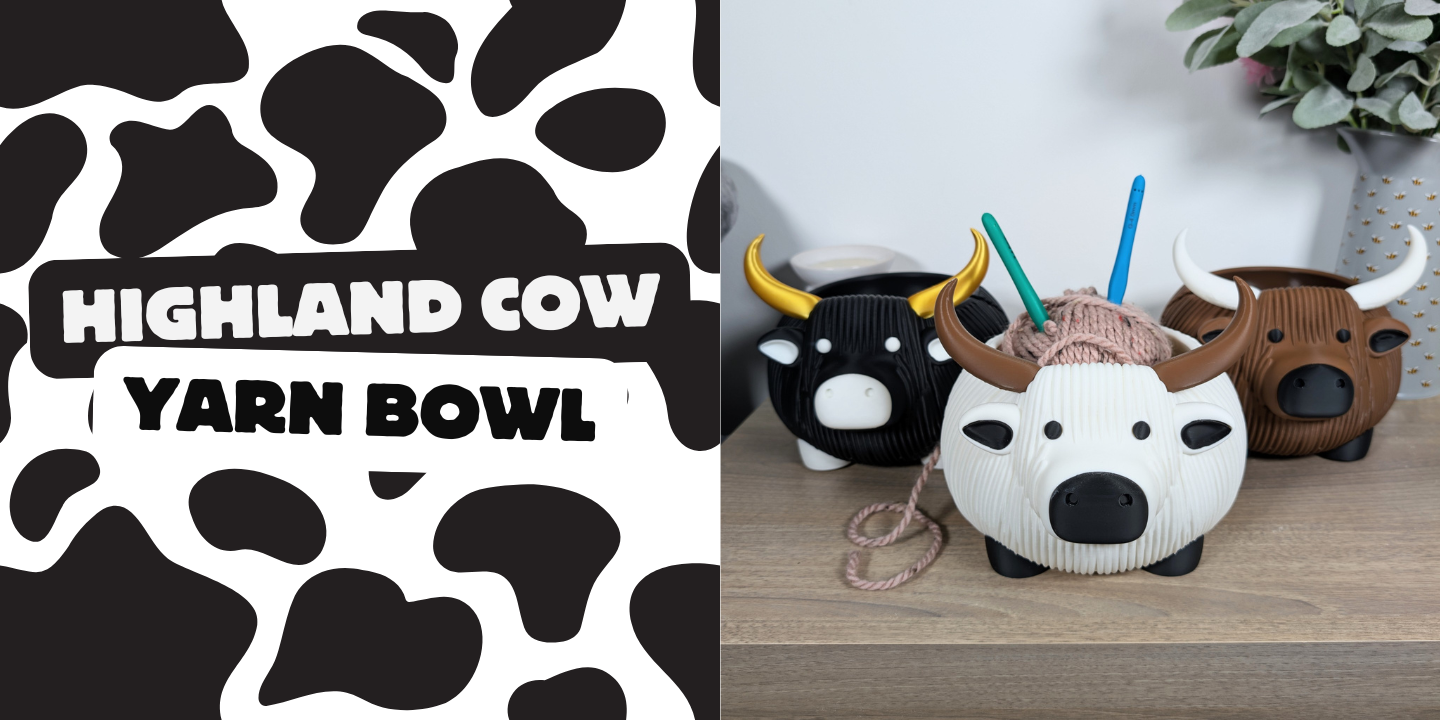 Highland Cow Yarn Bowl | 3D Printed Wool Holder – Unique Knitting Gift