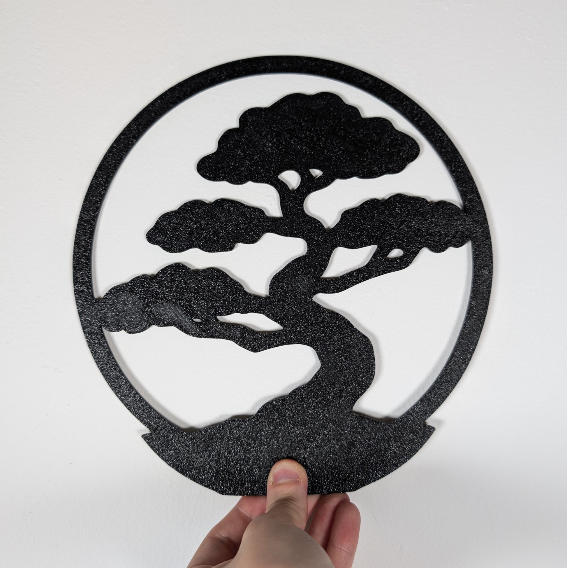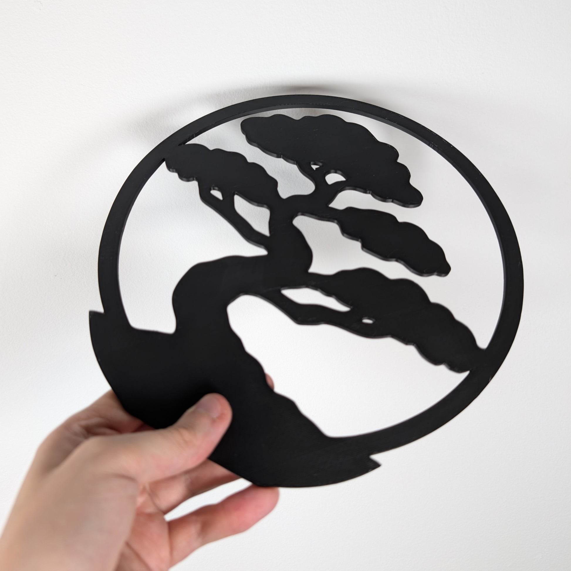 Infuse your space with the calm and serenity of the East with this 3D Printed Bonsai Tree Wall Art 🌿🧘♂️. Elegantly crafted with precision, this circular piece showcases the delicate beauty of a bonsai tree in a minimalist silhouette design. Measuring 22cm in diameter and just 3mm thick, it's a lightweight and versatile decor piece that can be easily mounted with double-sided tape or adhesive strips.