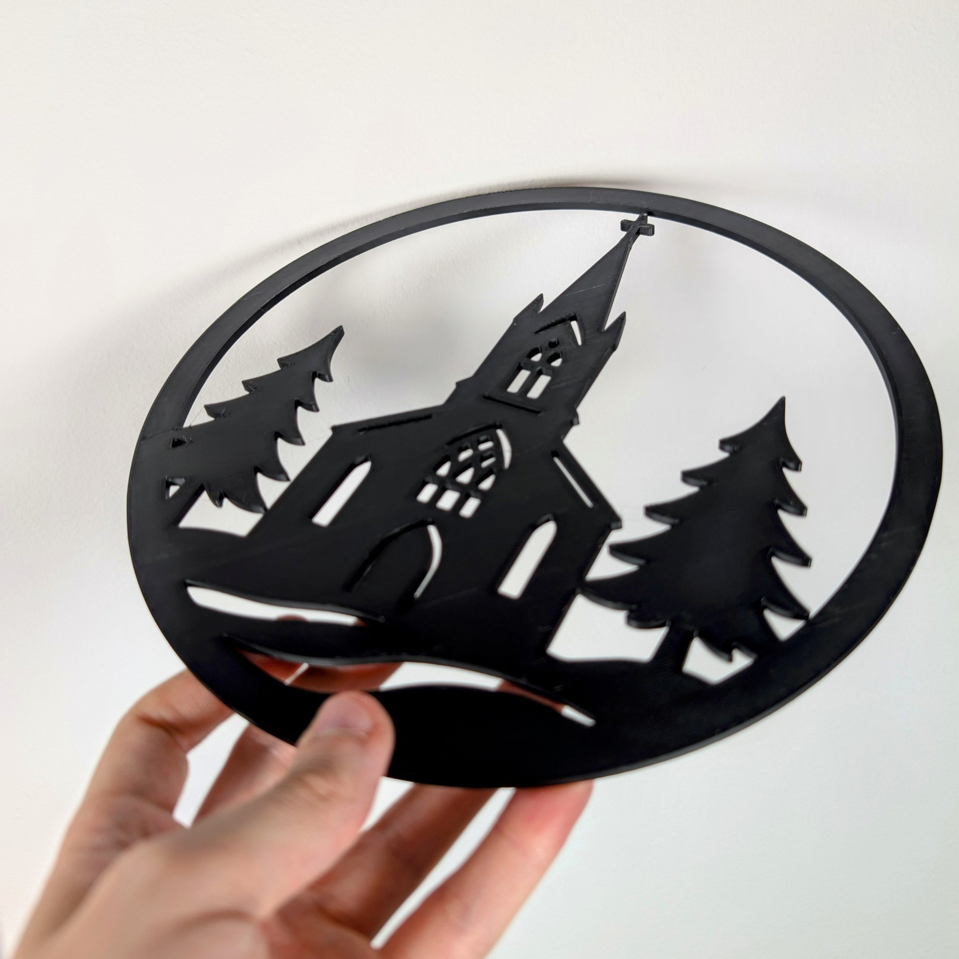 Add timeless elegance and architectural beauty to your space with this 3D Printed Gothic Church Wall Art 🕍🌙. Featuring an intricately detailed cathedral with surrounding scenic elements, this round 22cm decor piece captures the grandeur and mystique of medieval European architecture.